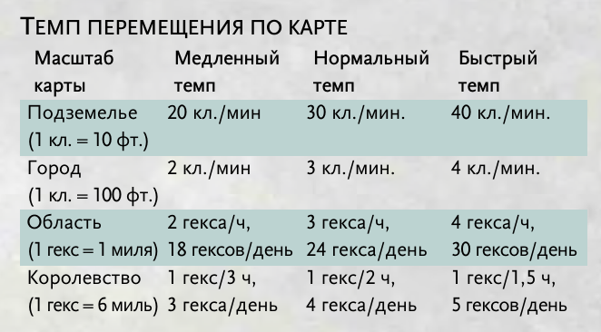 • За 1 минуту вы можете переместиться на количество футов, равное вашей скорости, умноженной на 10.